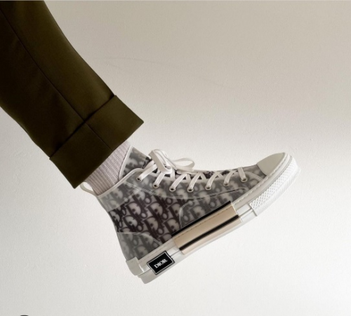 经典款的白色和黑色 Oblique 印花和透明拼接,黑白配色百搭不出错。回溯经典的高帮、低帮帆布鞋细节,如孔眼与系带、白色和灰白色橡胶鞋底、加固圆形鞋头和后跟提拉环等。并且侧面还饰以“DIOR”标志,经典又休闲。