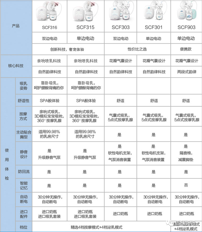 小白熊的吸奶器型号也挺多,大家可以根据下表的区别选择: